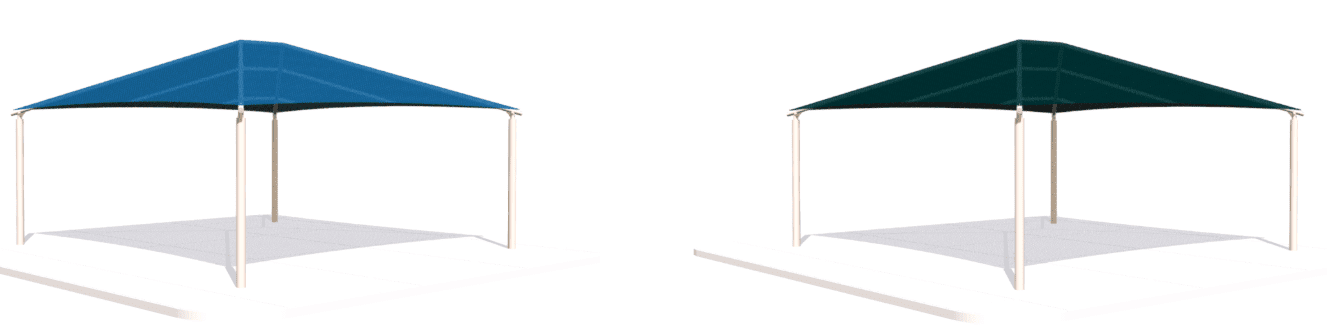 20′ x 20′ shade featuring an 8′ height, a Glide Elbow™ fabric release, and in-ground mount