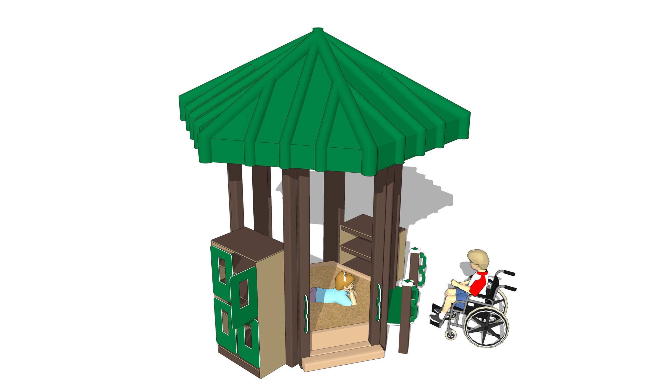 Kids of all abilities can create pretend meals in this outdoor ADA Sand kitchen! More than a simple sandbox, our ADA Sand Kitchen platform provides a secure transfer area with big steps and secure handles.