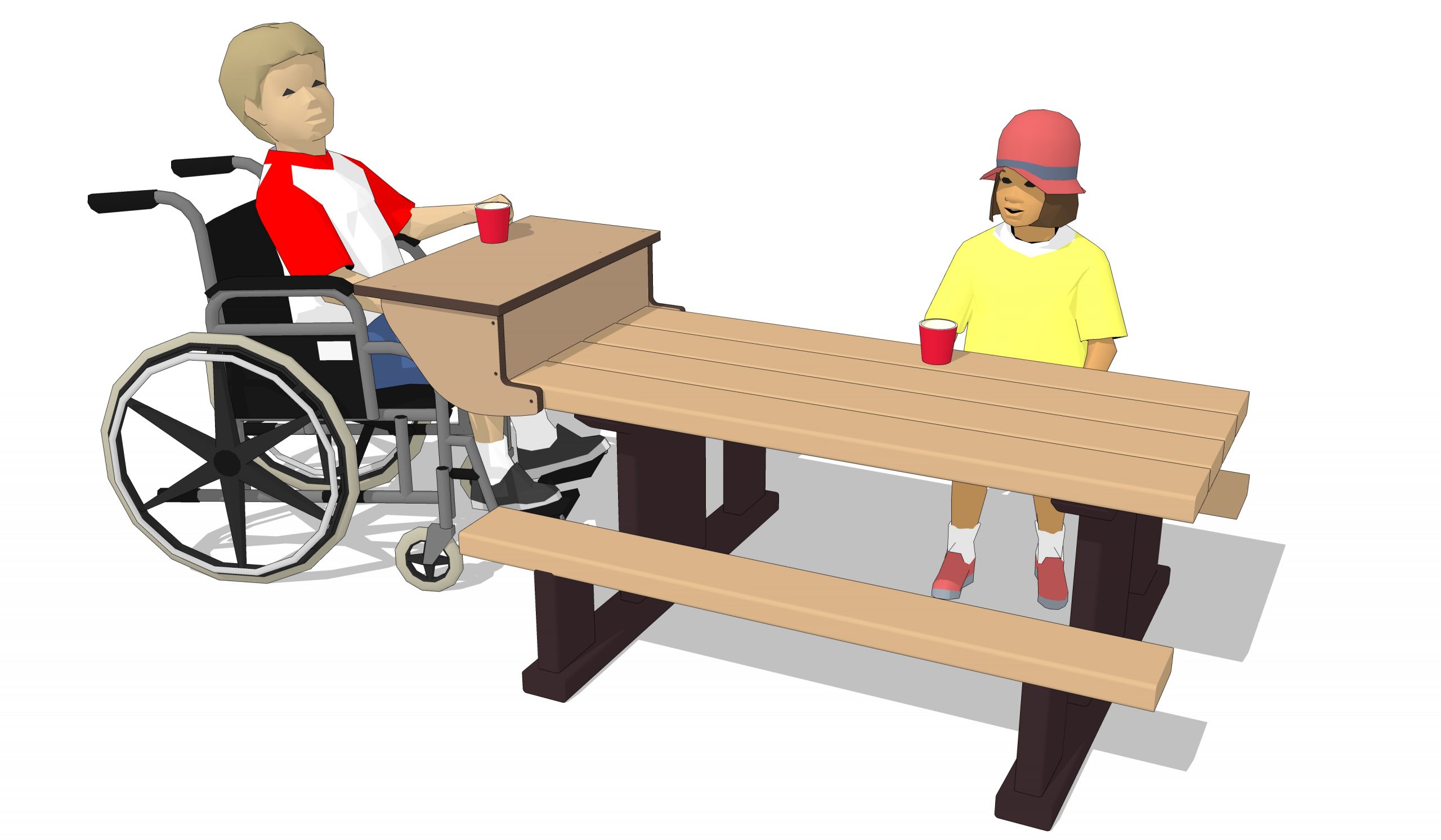 Everyone enjoys a picnic at this ADA Picnic Table. No worries about splinters or rot with this heavy-duty picnic table! Solidly constructed of 100% recycled plastic lumber and stainless steel hardware, this table will last a LONG time. Available in age-appropriate heights of 16″, 20″, or 26″ to delight children from toddlers to elementary students. Extension at one end ensures accessibility.