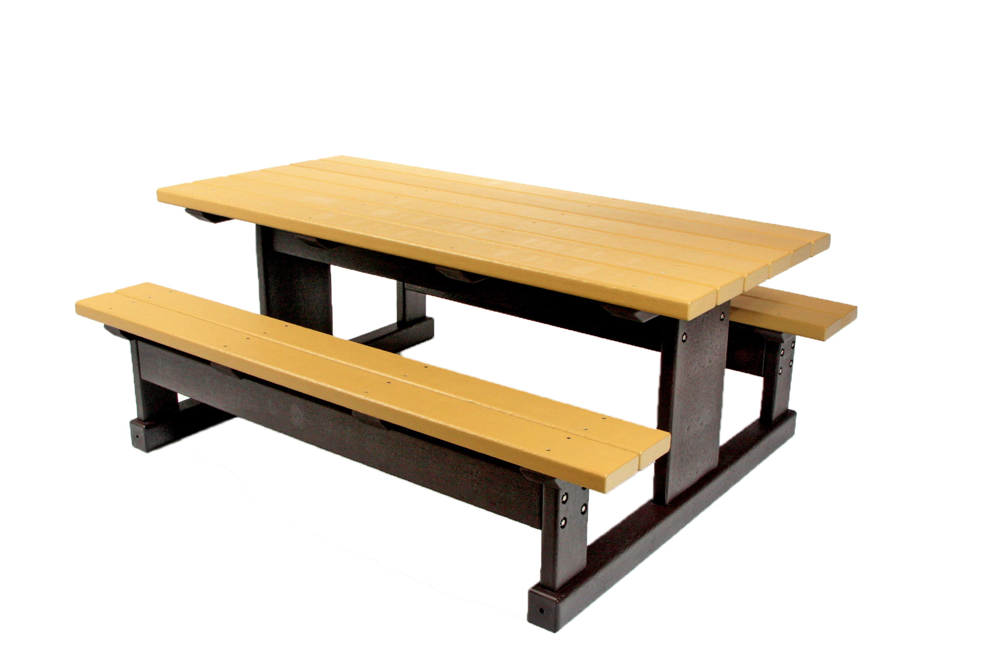 This heavy-duty picnic table will last through years of cookout seasons! Our proprietary RSP (Recycled Structural Plastic) is both easy to clean and vandal resistant. Smooth surfaces ensure no snags or splinters to ruin the picnic. Comes with appropriate hardware for your specified installation – anchor, surface mount, etc. Sturdy and very durable, actually too heavy for vandals. It is a good long term investment for parks, schools, civic centers, HOA’s. Steel and fiber reinforced so benches and tops won’t sag like many recycled products.