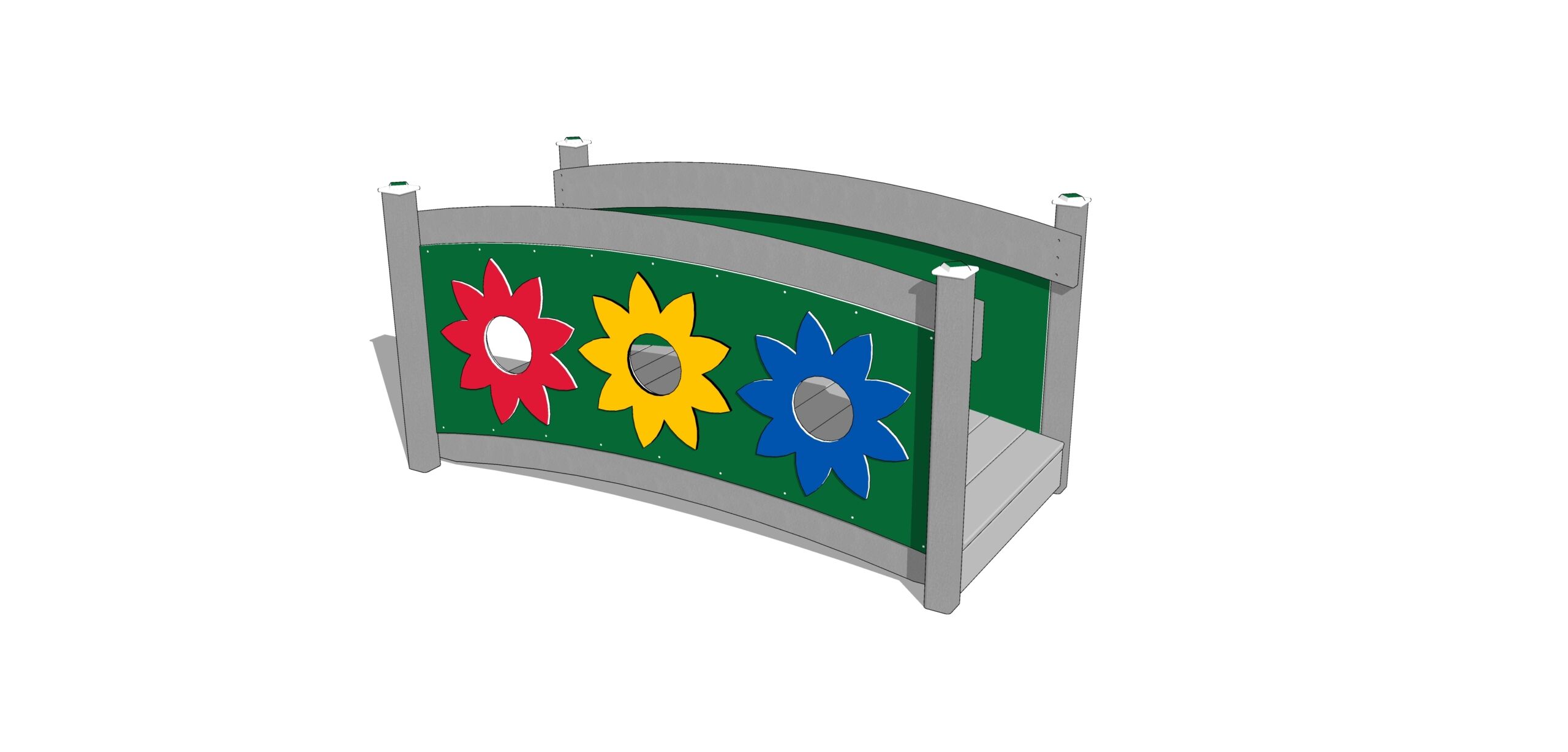 The Nature of Early Play Arch Bridge with Flower Faces makes an adorable trike or walking bridge on the playground. Put our bridge over a shallow creek for endless imaginative play. Just enough arch to help the little ones learn better balance.