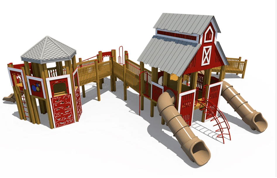 Our Large Barn Themed Recycled Playground is a customer favorite! With a wide ramp throughout, children of all abilities can play together. They’ll love exploring the fun and interactive play panels, climbers, and slides.