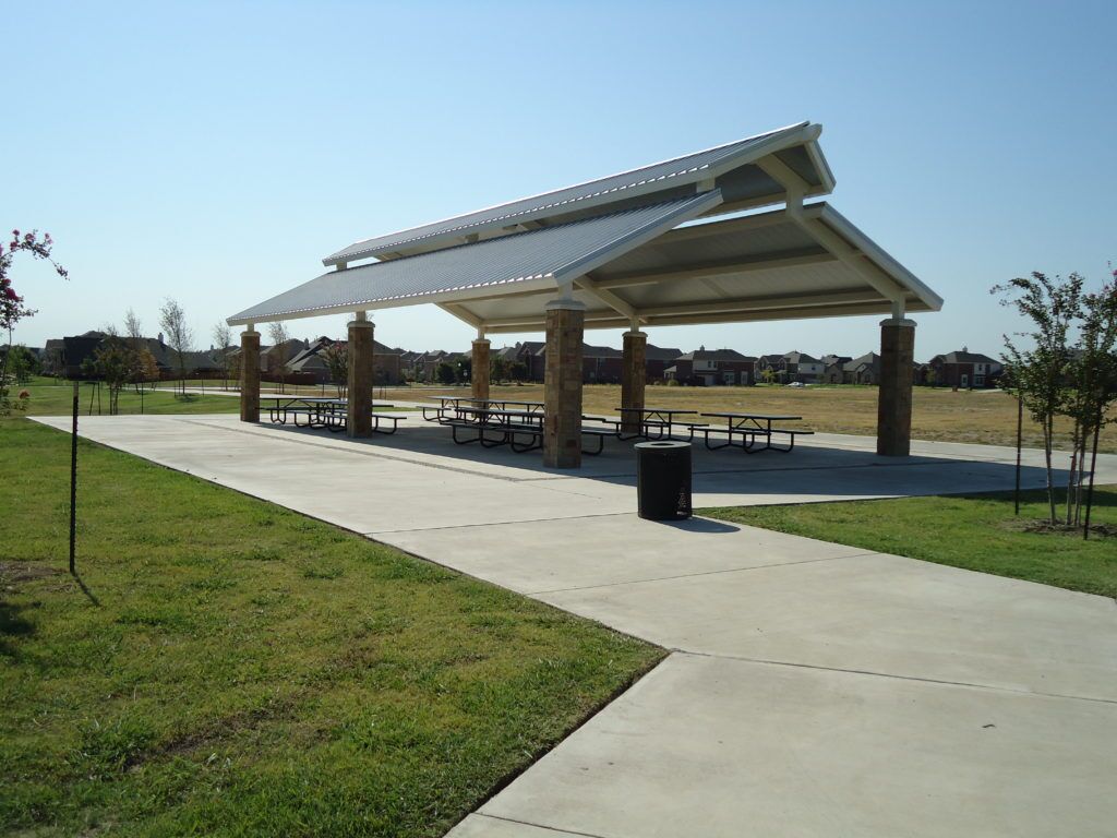 Inspired by turn-of-the-century barns, the Cheyenne shade model is available in a variety of square or rectangular sizes. The standard model is supplied with tubular steel columns, though masonry may be added as shown below. Easily enclosed with clerestory windows.