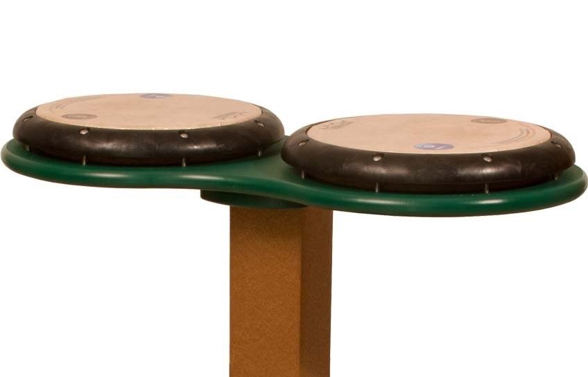 Drum Tables are great for schools, daycare, hospitals, memory care facilities, and playgrounds everywhere. Surfaces are easy to clean and maintain, ensuring years of enjoyable use. The durable frame is constructed of 95% post-consumer recycled plastic. Heavy-duty, replaceable, REMO drumheads produce deep and sharp tones. They stand up to vigorous hand drumming and even drum sticks.
