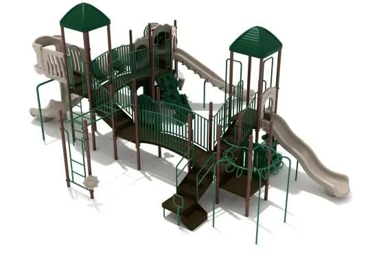 With multiple climbers, slides, and activities, the Galveston play system is no less than a playground paradise for kids. First off, climbers like Snake Climber, Pixel Climber, and Pod Climber are there to challenge the strength of kids and build their upper body muscles. The deck is very spacious and big, so kids can walk between multiple bridges and say hello to their partners or parents while enjoying the overall experience.