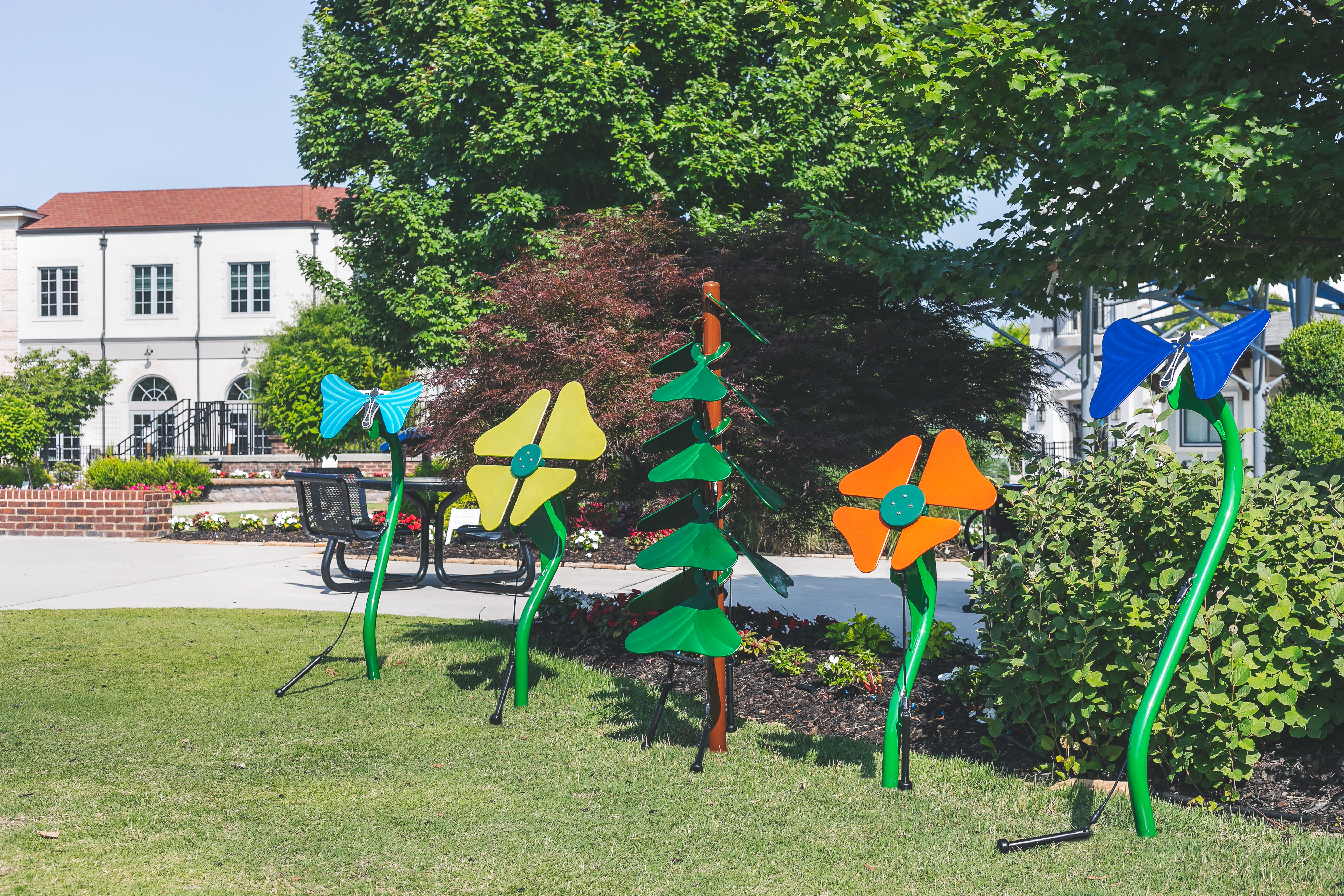 For smaller, compact spaces, the Garden Bed Ensemble offers a colorful melodic collection of Flowers, Butterflies, and the Tenor Tree that emit bright, sustaining notes from their petals, wings, and aluminum leaves.
