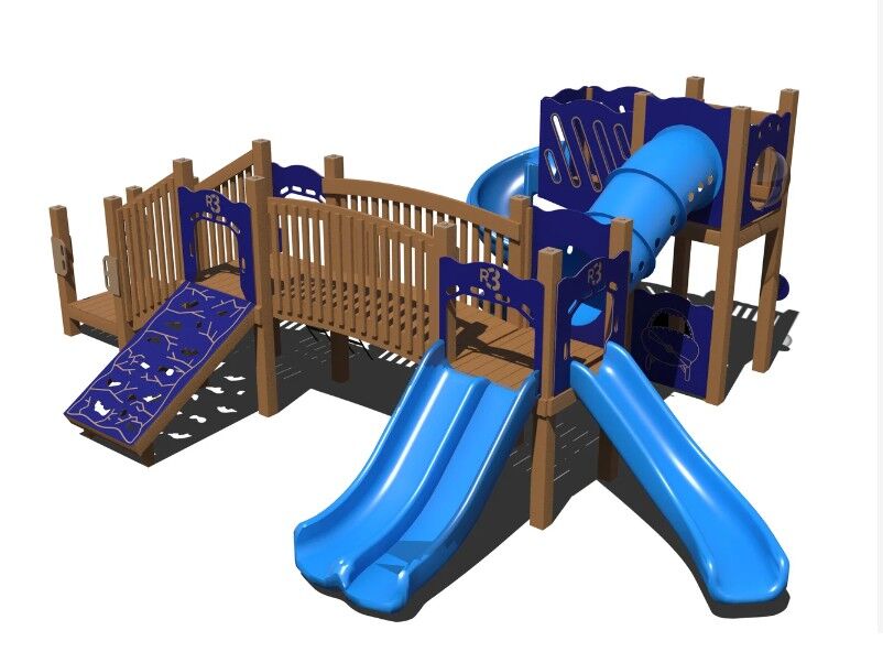 Children will have fun while staying safe on this commercial recycled playground! Designed for children aged 5-12 years, this ADA-compliant structure is a great choice for elementary schools, churches, or parks.