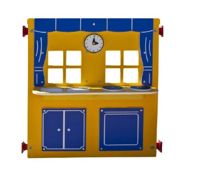 Children can act out everyday kitchen scenes with the Kitchen Play Panel. This dramatic playground panel is designed to be installed at ground level. Available in your choice of the main panel color of your playground plus an accent color.