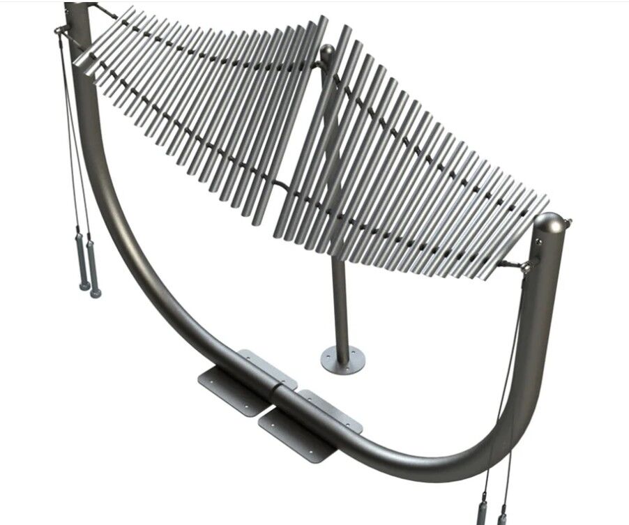 Much like the manta ray fish, this Manta Ray playground instrument has a similar shape. Our Manta Ray is a playground instrument metallophone ideal for parks and schools. This unit features 36 individual chime tubes suspended by steel cables.