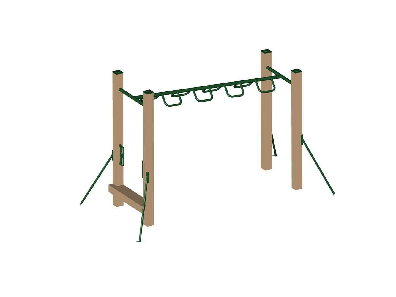 Install this equipment at your favorite playground or as a Fitness Station to enhance your community park’s walking trail. Kids will be physically challenged to grasp the Overhead Ladder bars, rings, or rungs and make their way from one end to the other. They’ll be building strength, muscle, and coordination in the process. Plus, it’s a fun achievement to add to their ever-growing list of accomplishments.