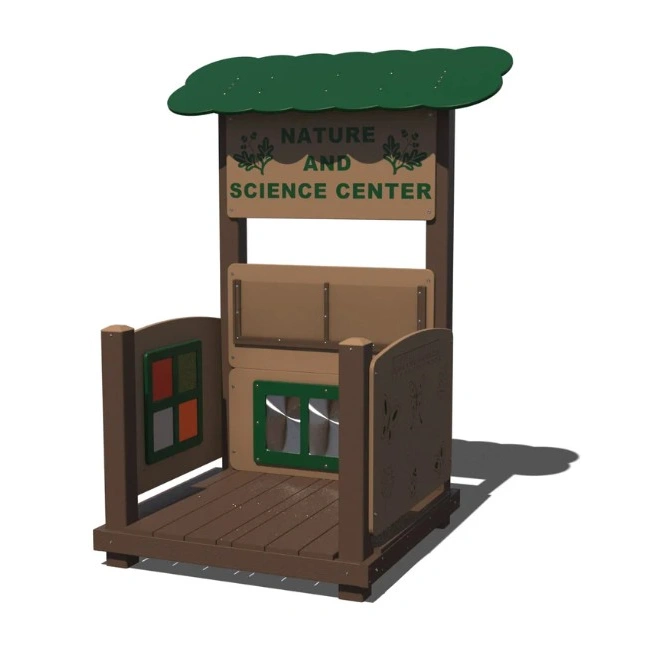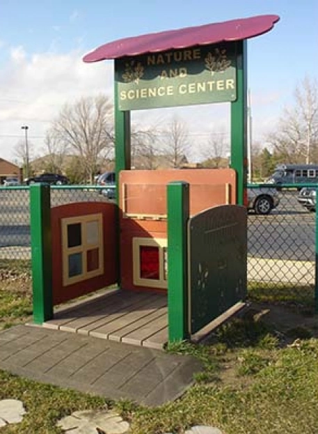The Nature and Science Center is a fun outdoor play component that allows children to study outside.