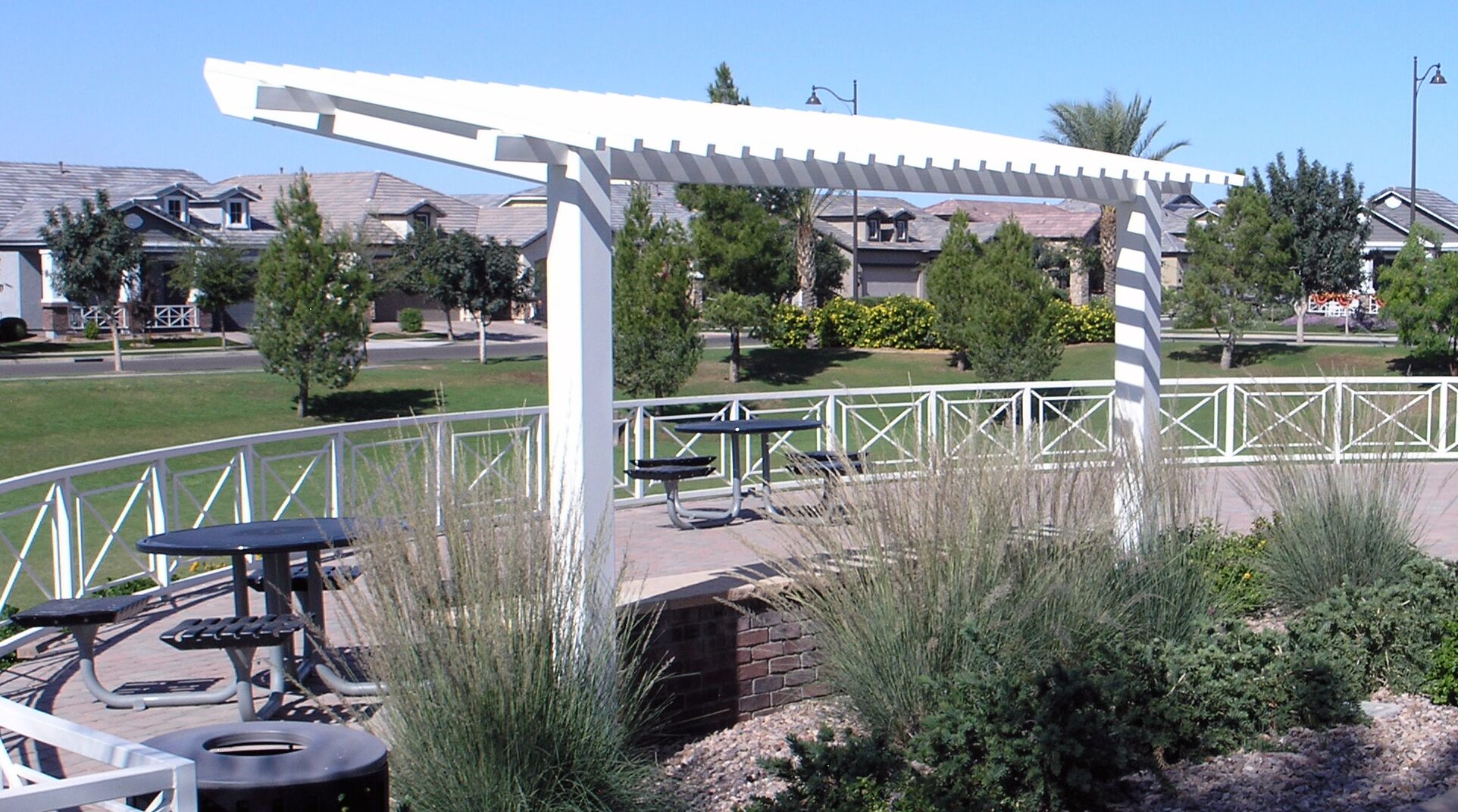 Our Trellis shade structure model creates a feeling of openness and light where space is more important than shade. All roof members are tubular steel and finished in powder coat frame colors.