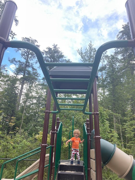 Bald Peak Colony Club recently added playground.com’s “Tidewater Club” play set with a neutral color scheme. Fitting this structure has a great view of the high tide and waves in Moultonbourough NH!
