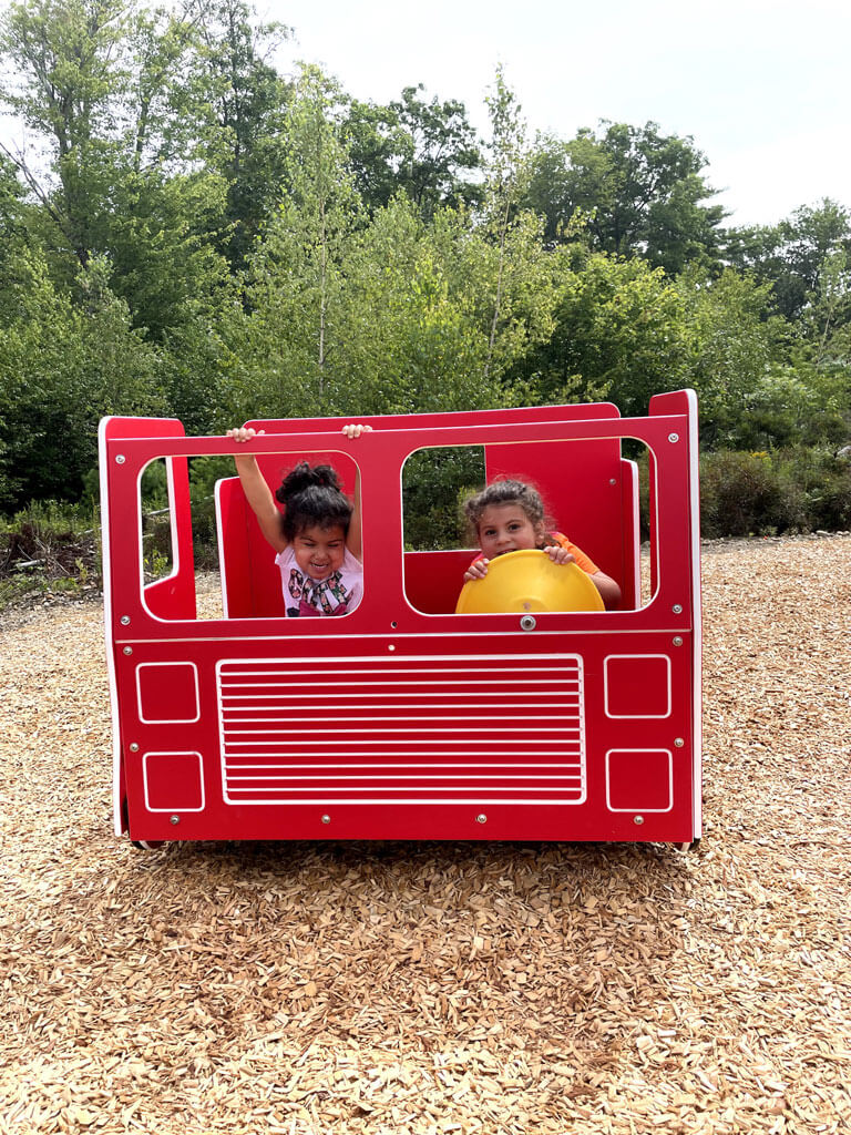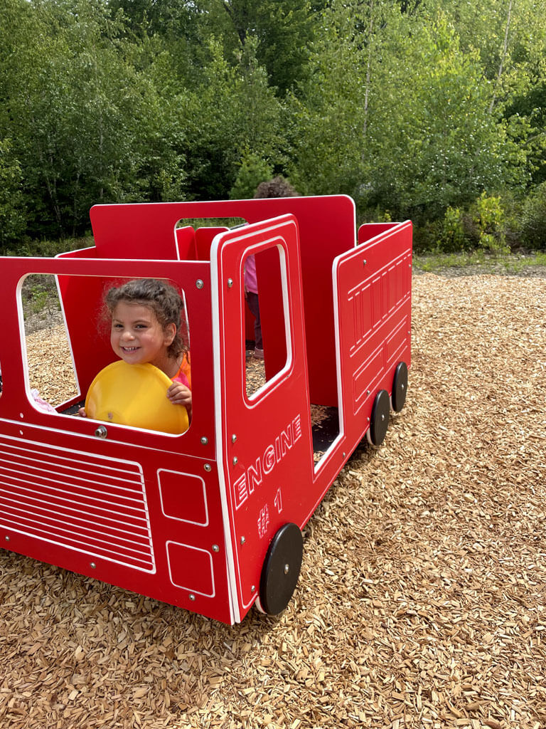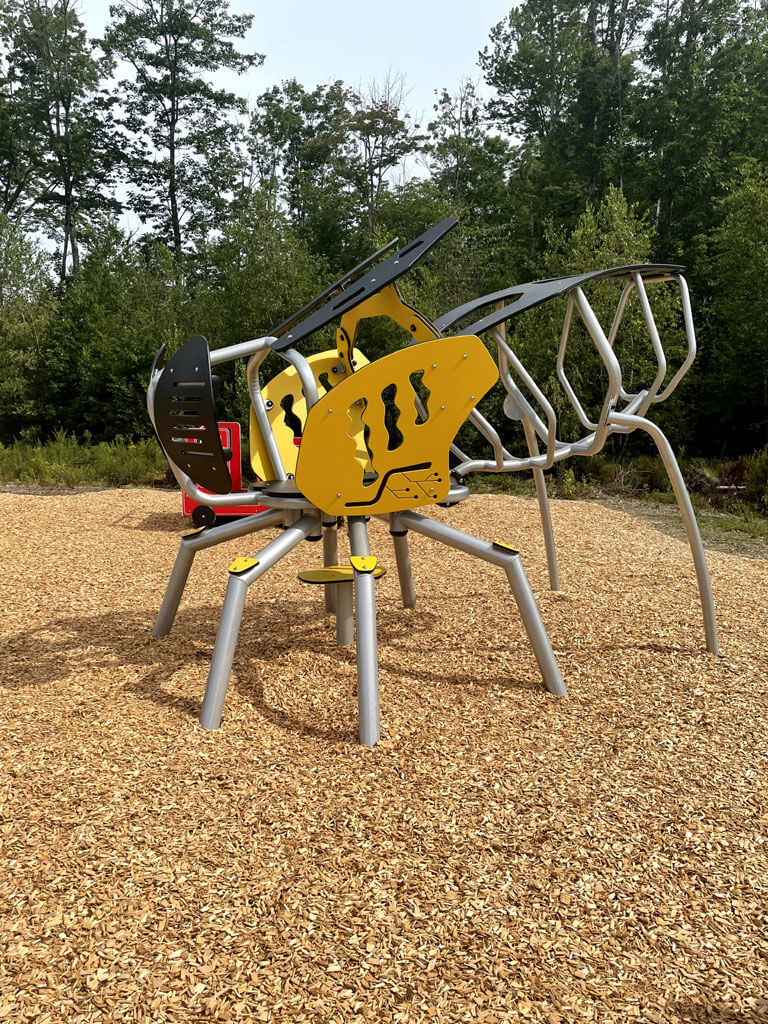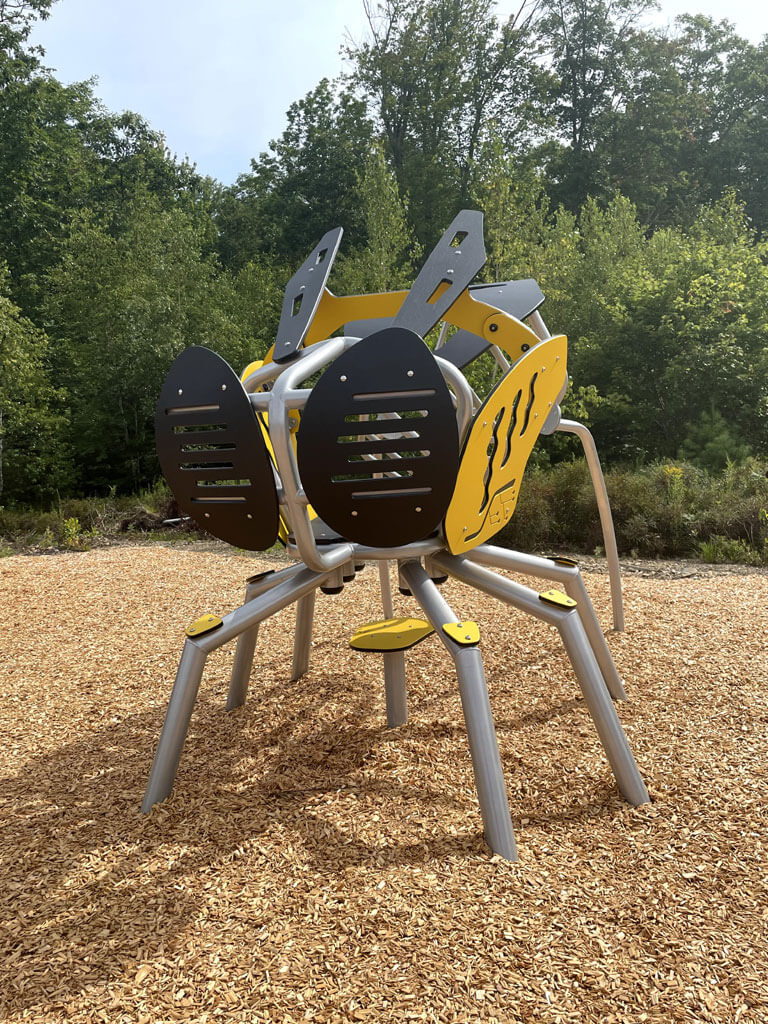 And there’s something for every kind of explorer. Whether they’re swinging high on the swing set, crawling through tunnels, or climbing to new heights on the rugged rock climber, there are endless ways to move and discover. One of the playground’s most buzz-worthy attractions is the giant, colorful Bug Climber by Jambette. This larger-than-life creature looks like it crawled straight out of a child’s imagination! With bright exoskeleton colors and bendy legs to scramble over, the children love to climb on the antennae that wiggles with excitement.