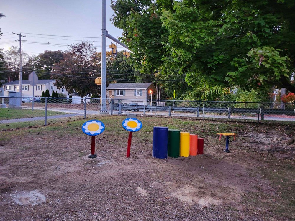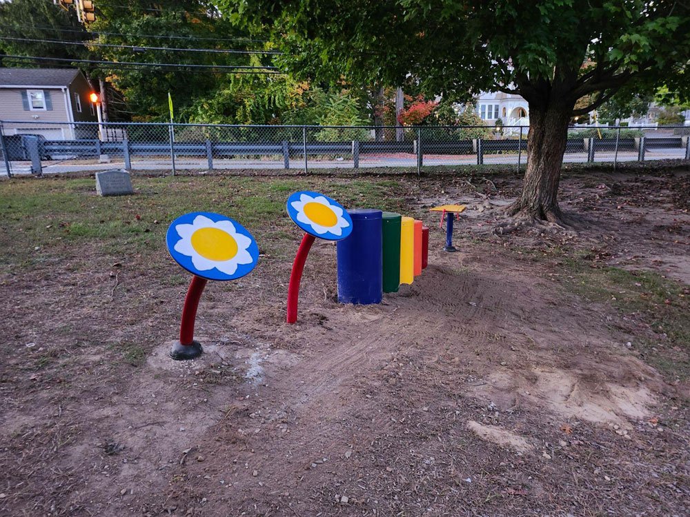 Mary A. Fisk School added a musical garden to their existing playscape. Musical gardens are a great option as they do not require safety surfacing and can enhance any play space by providing imaginative and dramatic play elements. Equipment was manufactured by playgroundequipment.com and includes a flower drum, the Glockenspiel and the Standing Drum Quintet.