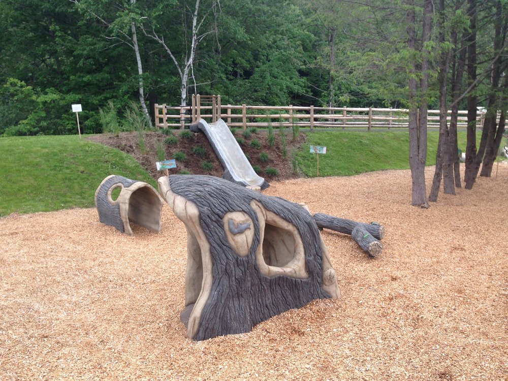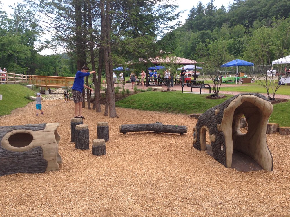 The Town of Erving received a $400,000 PARC Grant to help redevelop the Usher Mill and surrounding area into Riverfront Park. The project includes a playground designed and built by Premier Park & Play. The ADA-accessible playground has a forest-themed play structure with a slide, tunnels, and climbers, installed on a safe, eco-friendly and natural wood fiber mulch surface. There is also a shelter with picnic tables and a sheltered stage for performances.