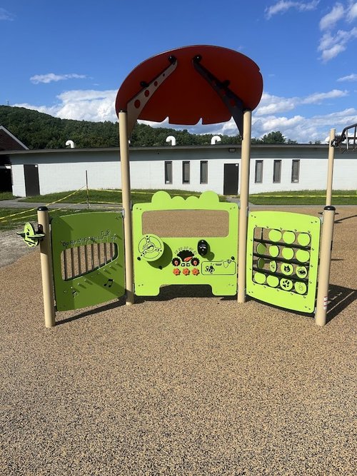 Winchester Elementary School recently added a brand new Obstacle Course play structure from Jambette specified for children between the ages of 5-12. Jambette’s Inclusive Panel Trio was also added to the space. PIP rubber surfacing was set as the finishing touch to the renovation with a new First Team Basketball hoop being the cherry on top!