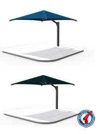 14′ x 14′ shade featuring a 10′ height, a Glide Elbow™ fabric release, and in-ground mount