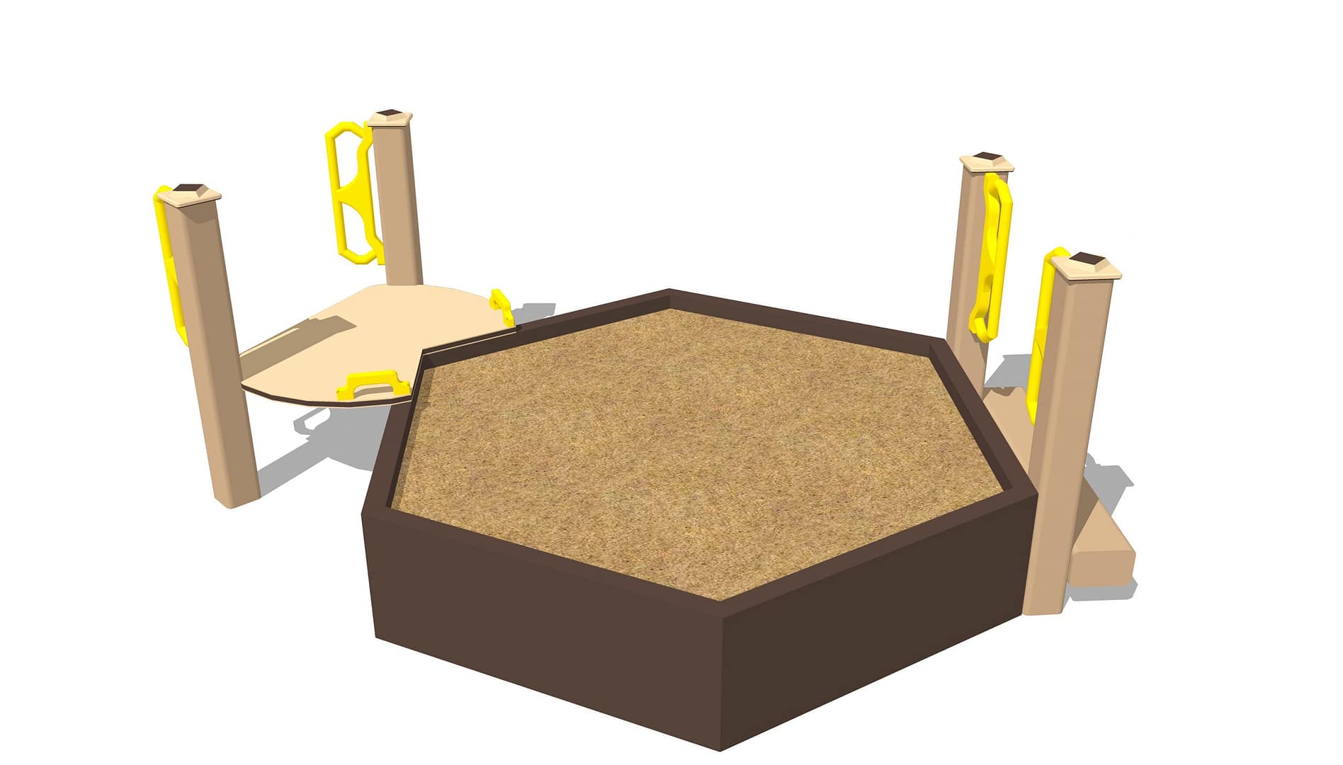 The ADA Hex Sandbox is designed so all kids can enjoy playing in the sand. Our ADA platform provides a secure transfer area for kids who need to access it from a wheelchair. The sandbox is extra deep and will hold up to 15 cubic feet of sand. Fun for kids of all ages and abilities.