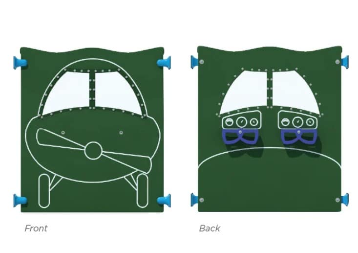 The Airplane Panel is interactive and comes in an assortment of colors selected by you! This panel contains an operating plane steering wheel for children to have fun and imagine themselves up in the air!