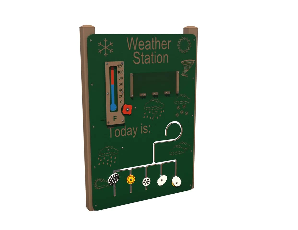 The outdoor Weather Station is a fun outdoor learning area piece that allows you to explore the concept of weather.