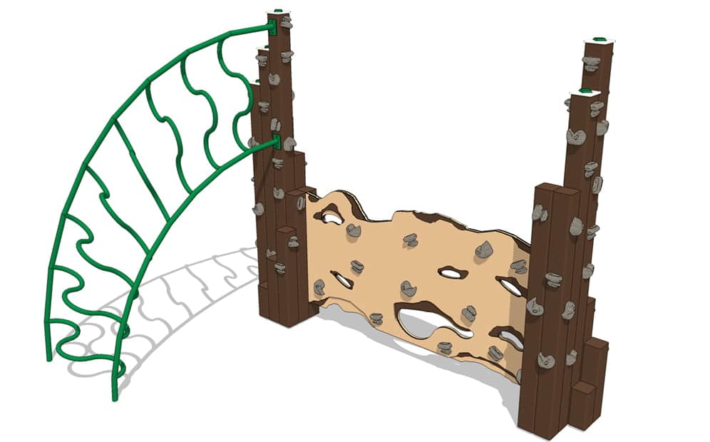 Future mountaineers can hone their climbing skills on this multi-level playground play set made from recycled structural plastic. Beginners can start on the low rock panel, then move to the double towers. As their confidence increases they can progress to the metal Vortex for the ultimate climbing experience!