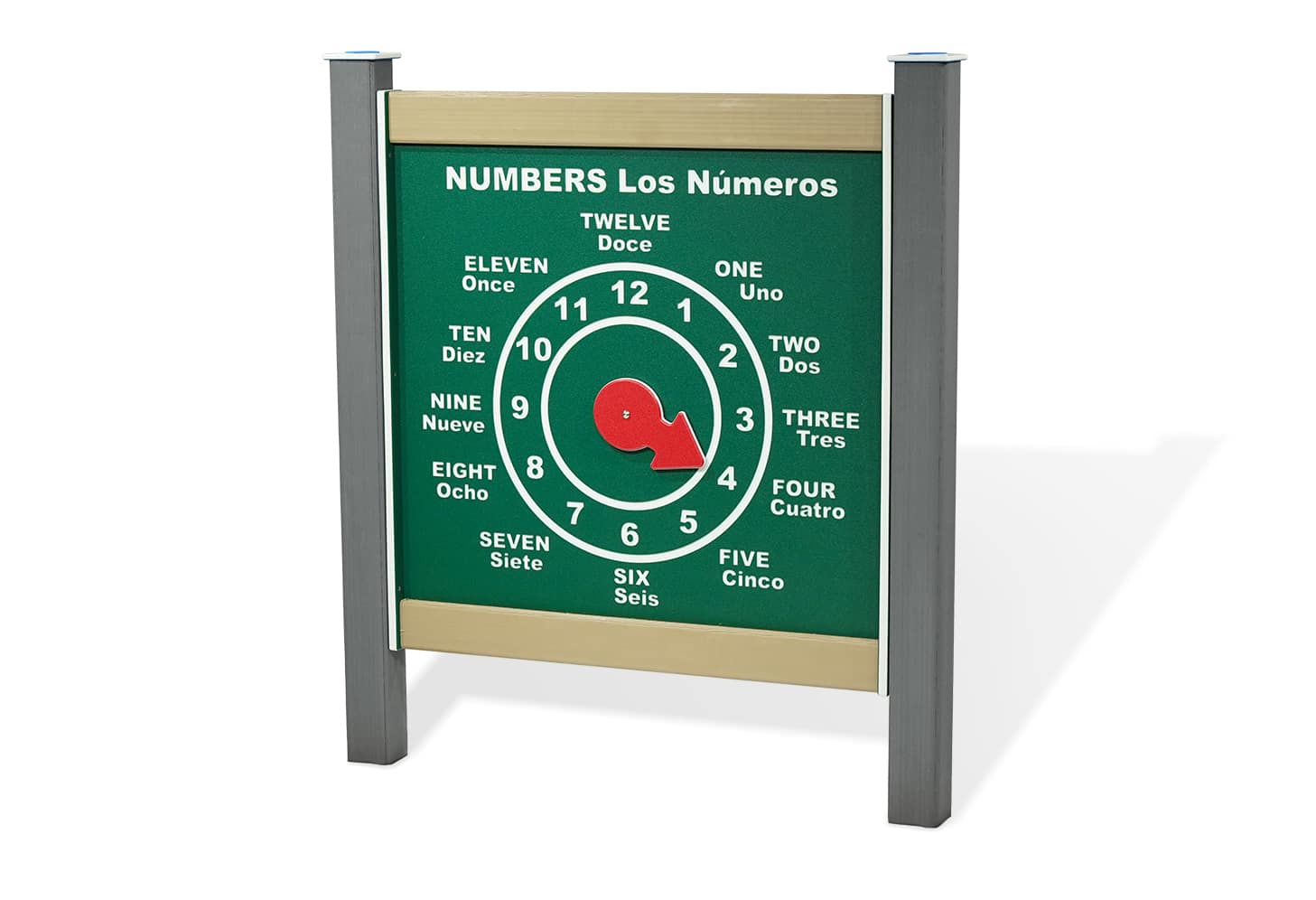 The interactive Linguistic Numbers/Clock Panel has a spinning hour-hand arrow to teach children to tell time as well as learn numbers. The panel is sized so children can reach the clock’s hand and move them to match the correct time, number, and word spelling.