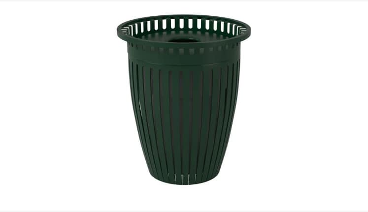 Our Crown outside trash receptacle features a modern, tapered design with a flared top making it the ideal choice for shopping centers and other retail spaces.