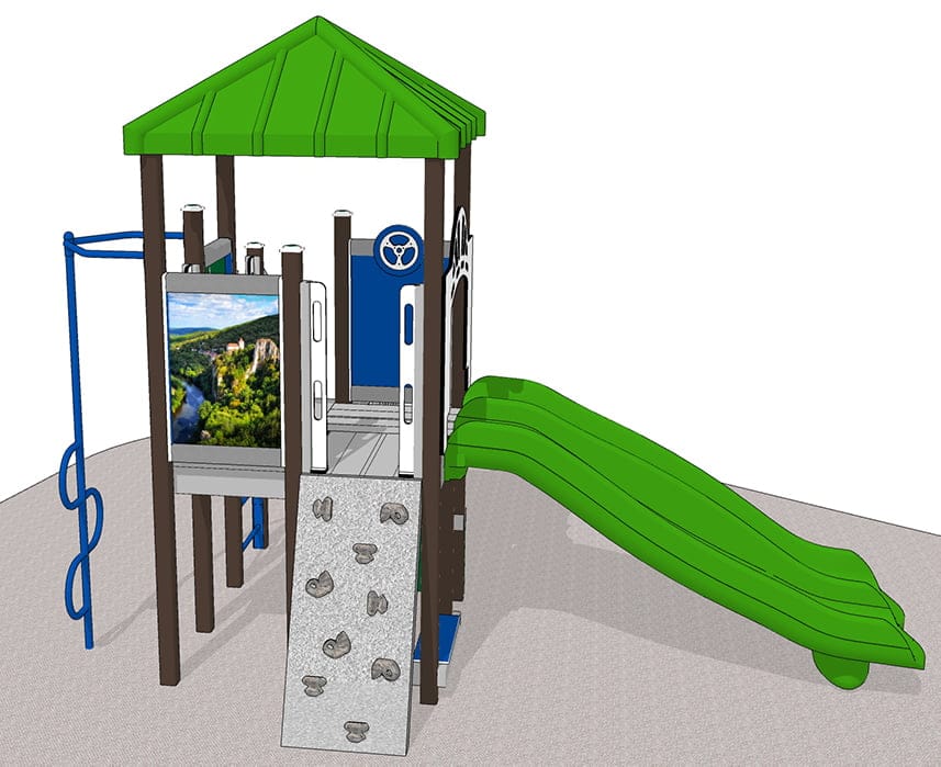 The Francaise is a French-themed playset that brings to mind a vacation in France, but right on the playground—anywhere in the world. Brilliant photo panels showcase the beautiful French countryside. The playset is part of our Mini series of playground equipment so it will fit nicely in any size outdoor play area.