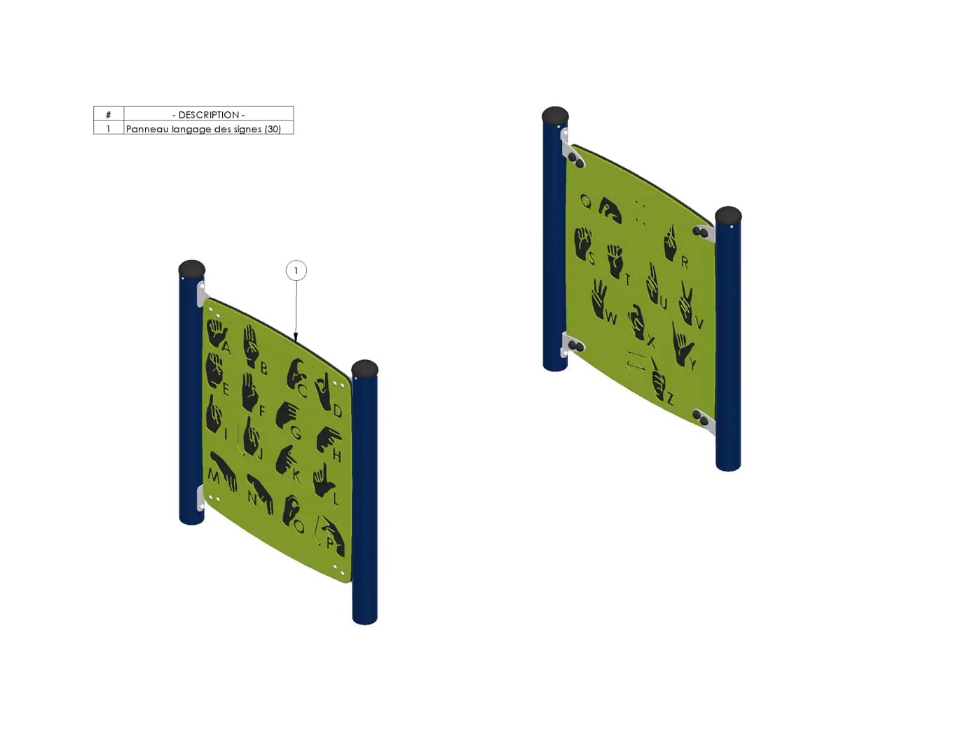 Sign language panels help to provide language and learning skills for all ages while in a playground setting.