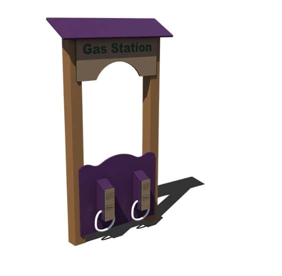 The gas station facade goes well in a trike environment where children are actively riding trikes.
