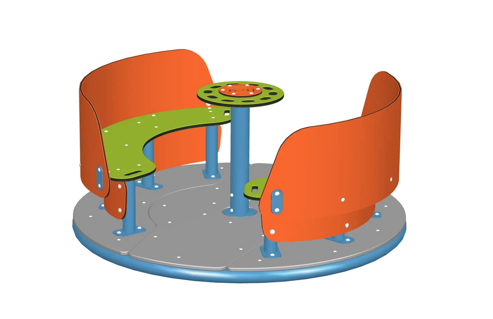 The Gira spinner from Jambette allows children of all mobility levels to enjoy safe and fun play. The two stylized benches make it easy for up to six children to sit down and use the steering wheel in the centre as a handle to hold on to and turn the spinner.