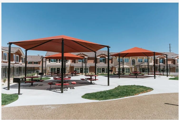 Our Hexagon Hip shade structures feature a six-column design. These shades are an affordable option for park, school, and church landscapes. We offer eight standard sizes with the option of creating custom sizes as well. Standard sizes range from 12 ft. to 55 ft. with 8 ft., 10 ft., and 12 ft. entry eave heights.