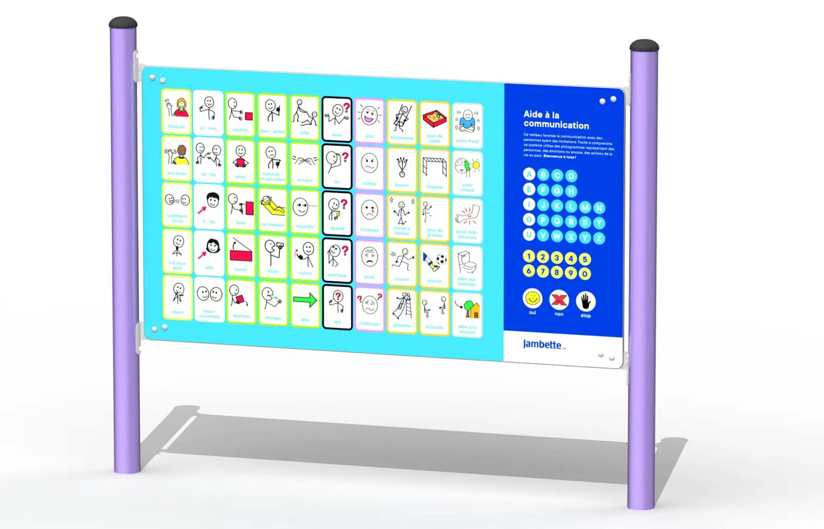 This board features a variety of symbols to help with communication at all level. This double sided board is available French, English and Spanish/double-sided)