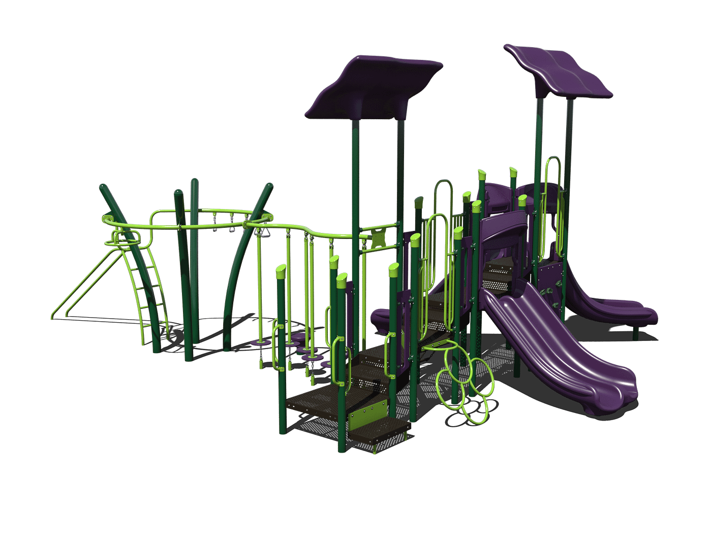 Addition to all of the fun features that contribute to this commercial school playground, the two angled roofs give this structure a sleek, modern look. Attached to the structure are numerous slides, including our double chute slide that provides an exhilarating fun for all children. This slide is just one of the many events that children will enjoy spending time on.