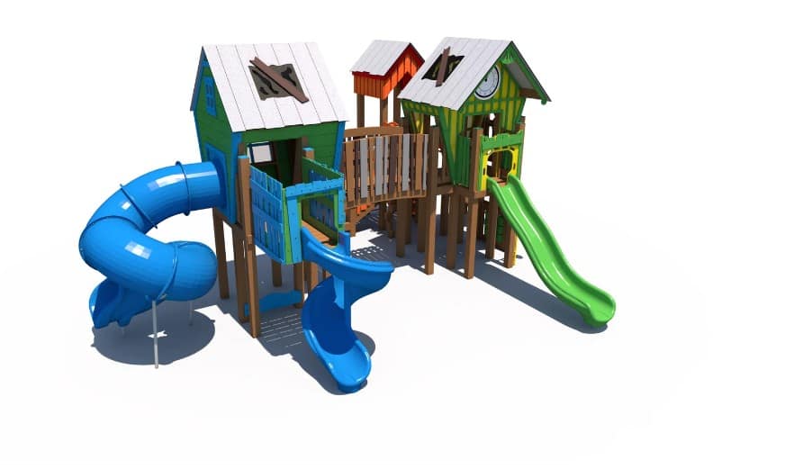 As one of our R-Town® Cottage playgrounds, the RFX-30157 is perfect for schools, child care centers, parks, and more. Featuring a whimsical cottage design, this playground is for children ages 2-12. They’ll have fun while they develop growing muscles as they explore the slides, climbers, and panels of this play structure.