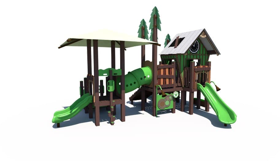 The RFX-30169 is part of our R-Town® Cottage series of fun and whimsical playground structures. This play unit includes 3 slides, a crawl tunnel, climbers, and interactive panels. It’s designed with an integrated shade to protect equipment and children from harmful UV rays.