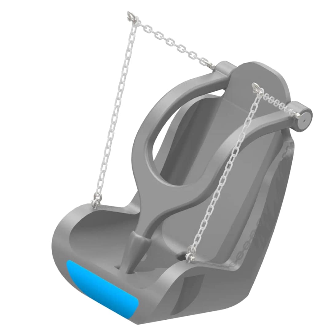 This adaptive swing is designed for users 5-12 years old and features a reclined seat with a full harness.
