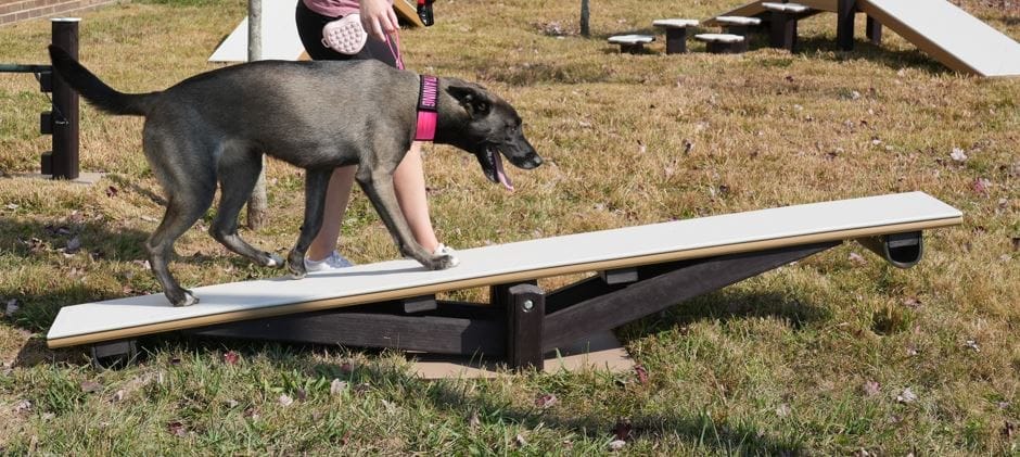 Standing at 8 feet long and nearly 2 feet high, the seesaw’s walking surfaces are treated with cloud surfacing, ensuring maximum slip resistance and temperature control for those sunny days. Proudly made in the USA for the enjoyment of pooches everywhere.
