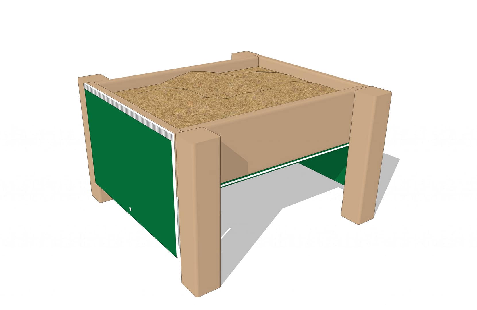 This outdoor playground Sand Table elevates sand-play to waist height for standing children. Great for ADA Accessible Sand Play. Lids (with a finger hole to open) and non-pinching hinges protect the sand from critters. Choose your height sized for your appropriate age playgroup.