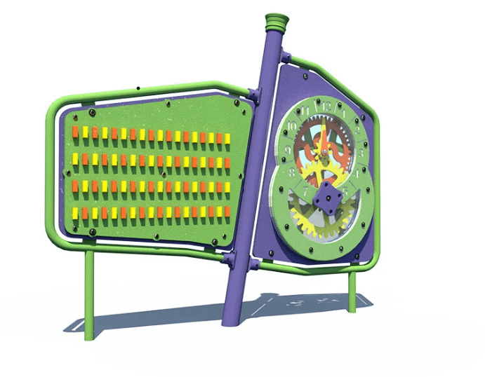 Are you looking to add meaningful play value to your playground? The SISTEM freestanding panel is perfect for children of all ages. Designed with sensory, interactive, science, technology, engineering, and math in mind, the STEM-0002 includes the Push Tabs panel and Clock panel. It’s supported with a durable powder coated frame.