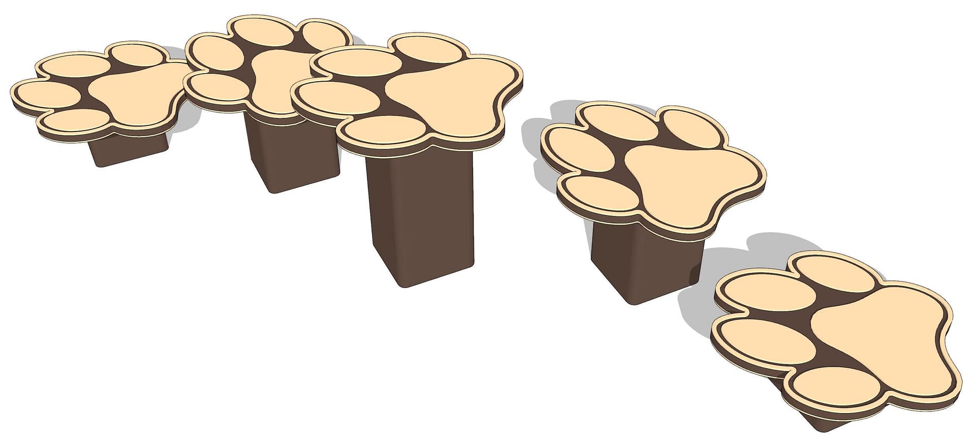 Add these Stepping Stools with tops shaped like Paw Prints to your playground. Install in-ground, either with a playset or as a stand-alone play area. Kids can hop from one to another, then use them as seats.