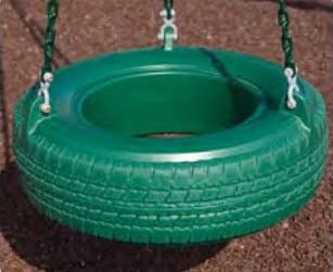 This polypropylene Tire Swing is a great improvement over the traditional version! Molded plastic is much cleaner than rubber, so it won’t stain clothing. The fully enclosed circle prevents standing water and bugs too!