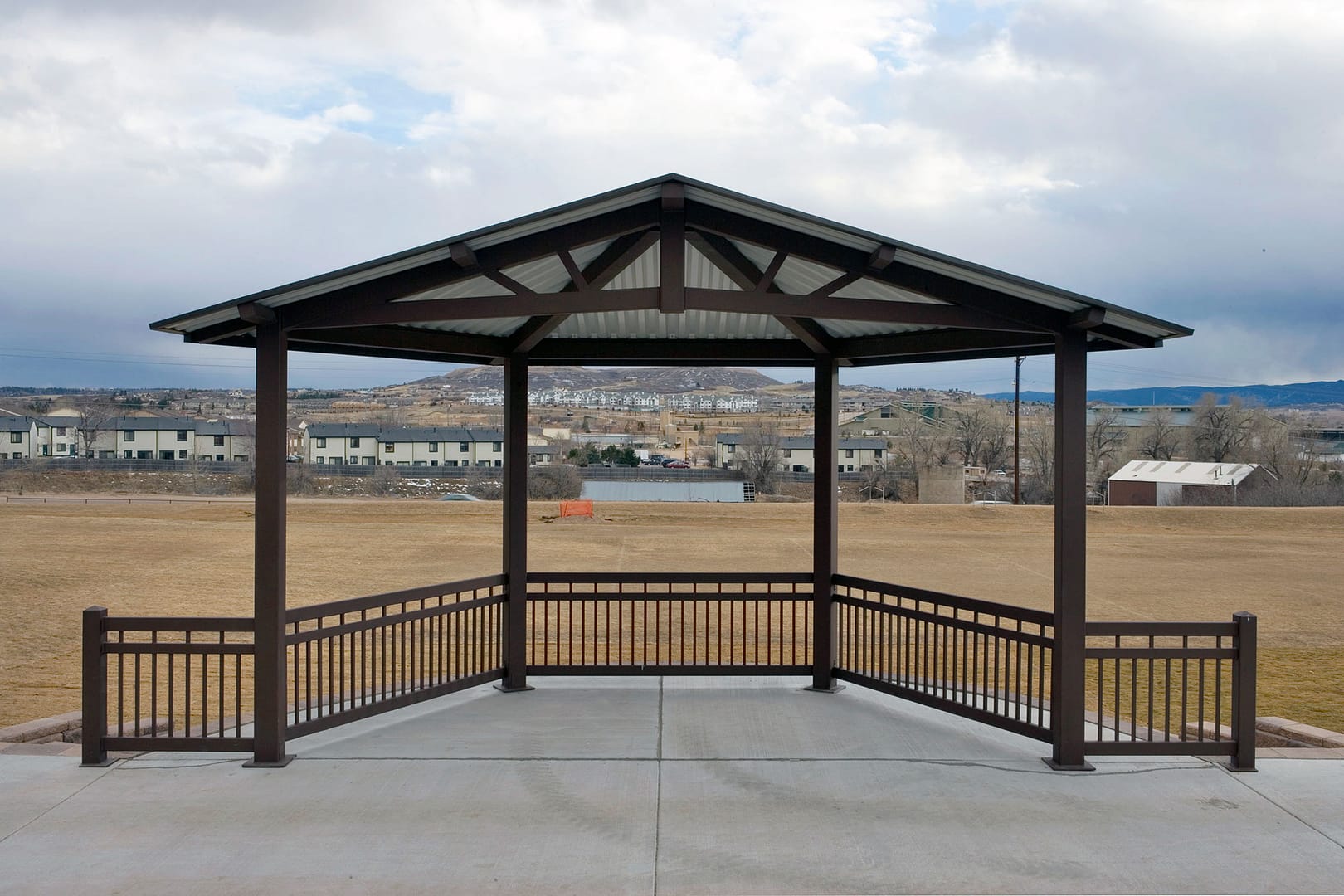 The Vienna shade shelter model is ideal for an outdoor performance in a variety of public settings, or as an overlook or viewpoint. The standard model features tube steel columns and is available in many sizes that can provide gazebo band shade.