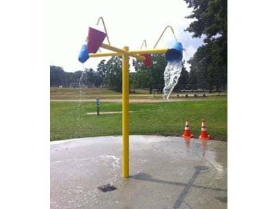 Amesbury’s Spray Park opened in 2015 with the help of Premier Park and Play. Water equipment present include: A tunnel of brightly colored loops, a turtle and lady bug that all dispense water. The carousel of pails dumping water spuratically is also a huge hit amongst the loyal youth who are thankful to have this new park for many summers to come!