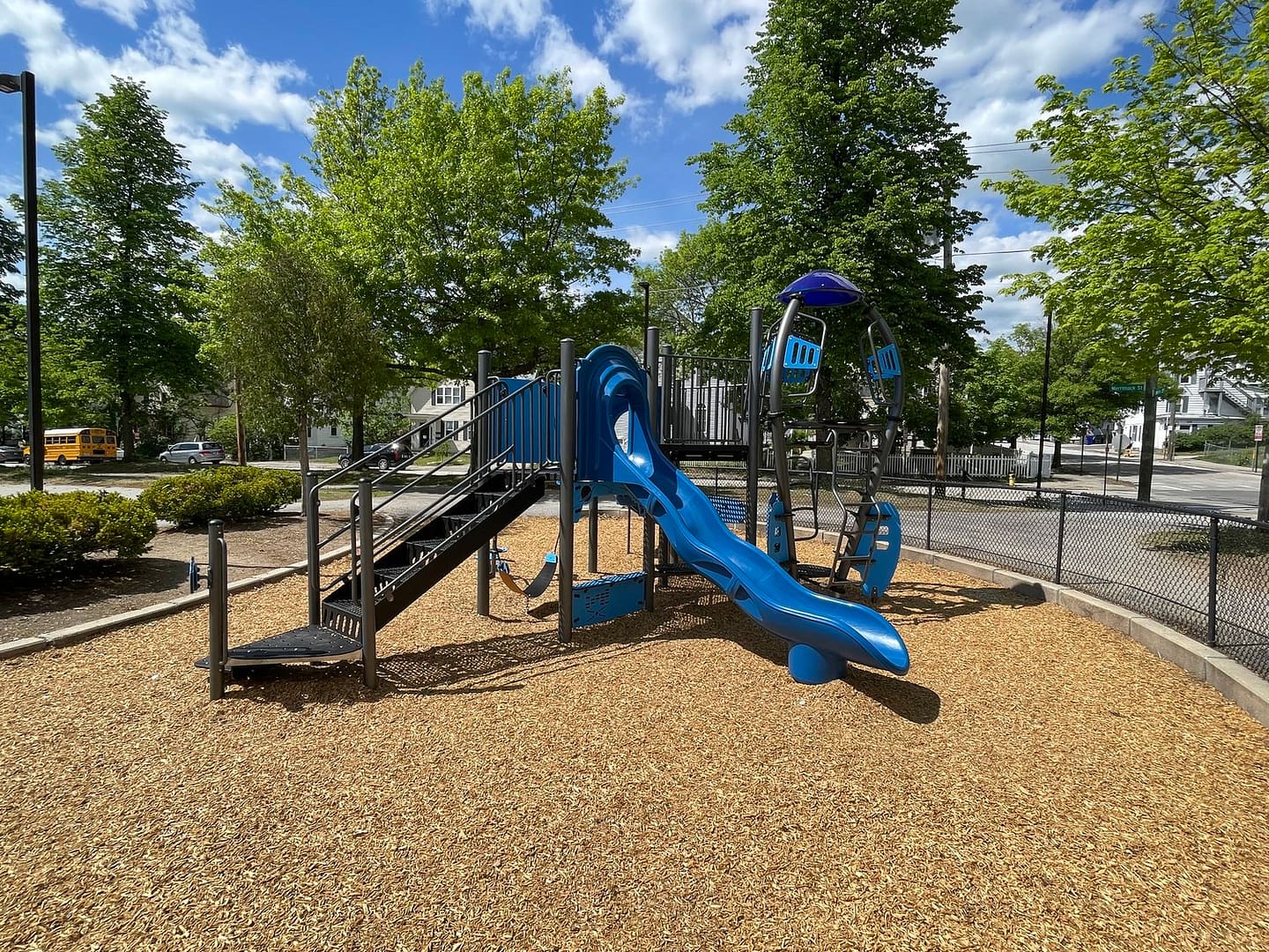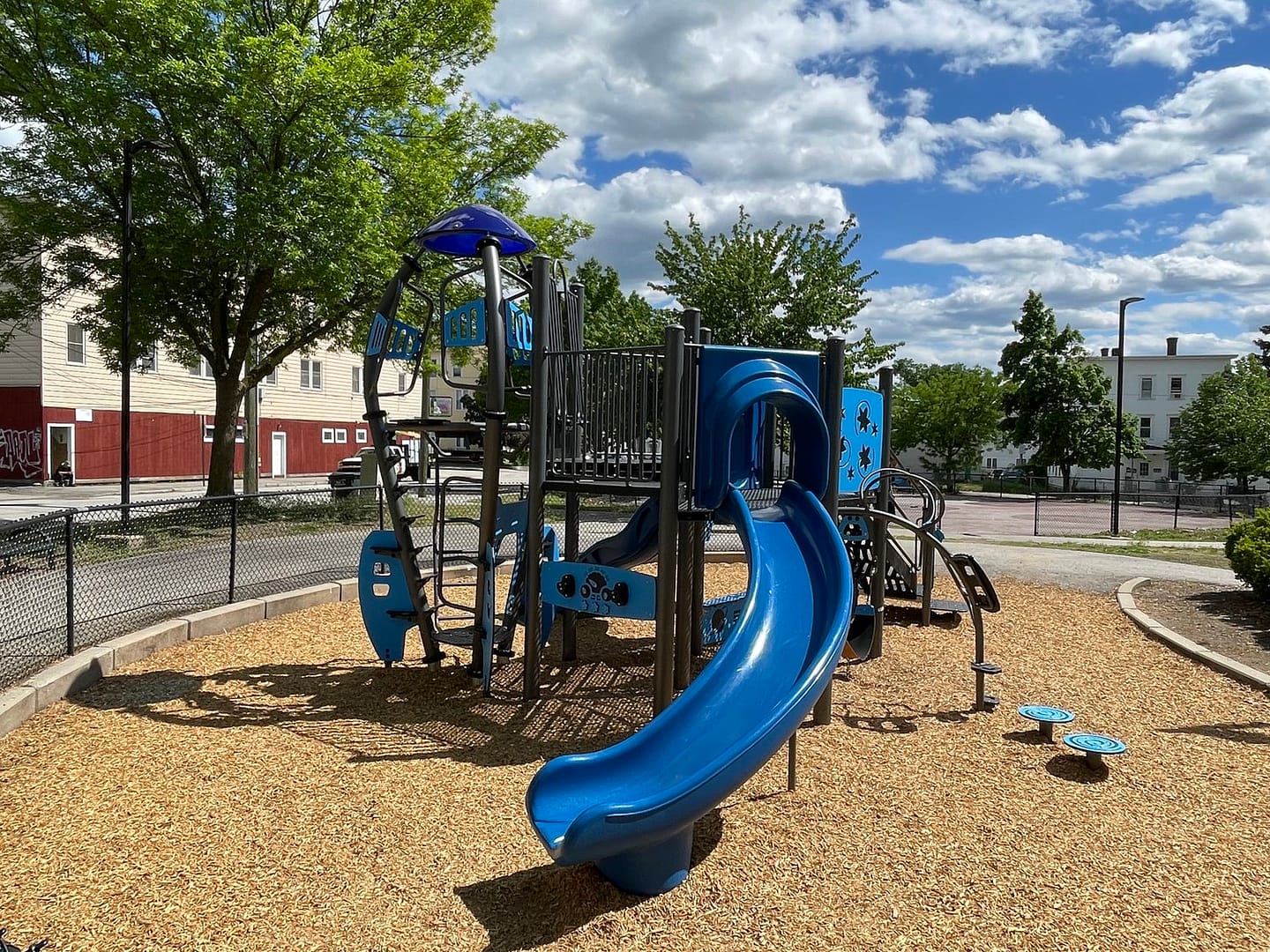 One of the many unique and creative structures from Jambette, this rocket-themed structure includes a slide, swing,climber, pods, and panels!
