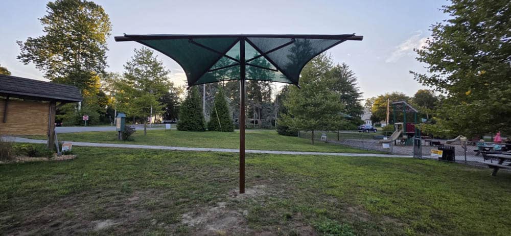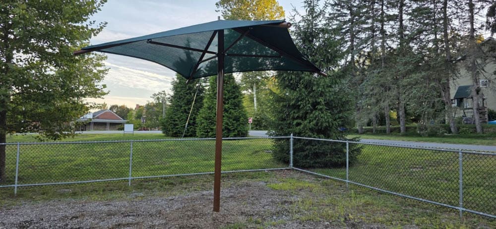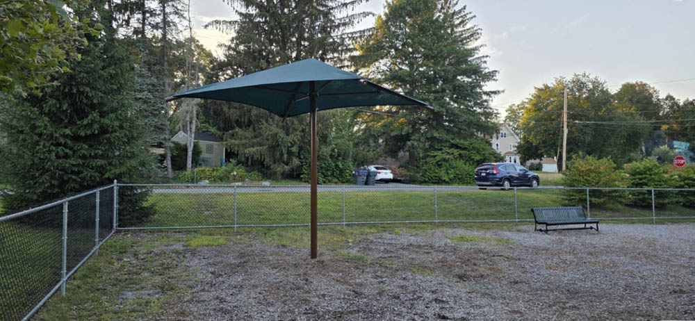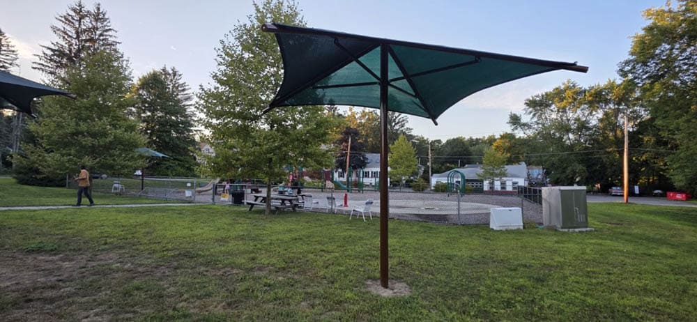 Three Square Umbrella Shade Structures with Glide Technology were added to the playground area, providing durable, attractive and easy-to-operate shade solutions. Designed to withstand New England’s seasonal changes, the glide elbow system allows for easier removal and installation, making it ideal for areas where winter takedown is necessary.