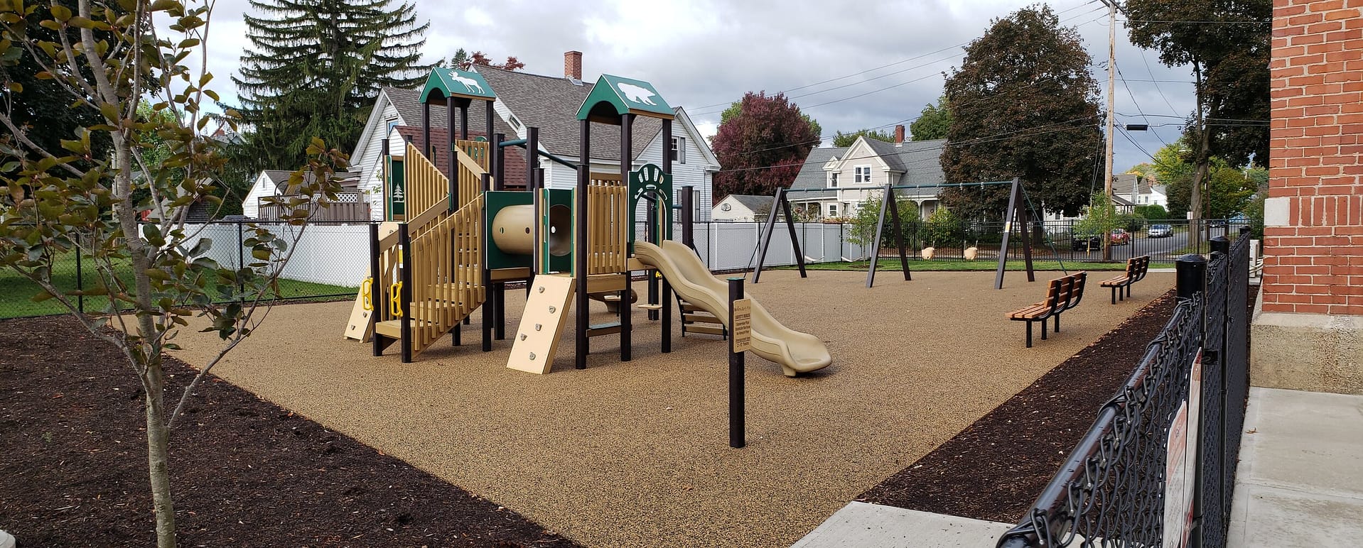Premier Park & Play built this Nature of Early play kids playground at Mosely Street Apartments, with swings, slide, climbers, tunnels, benches and playground surfacing