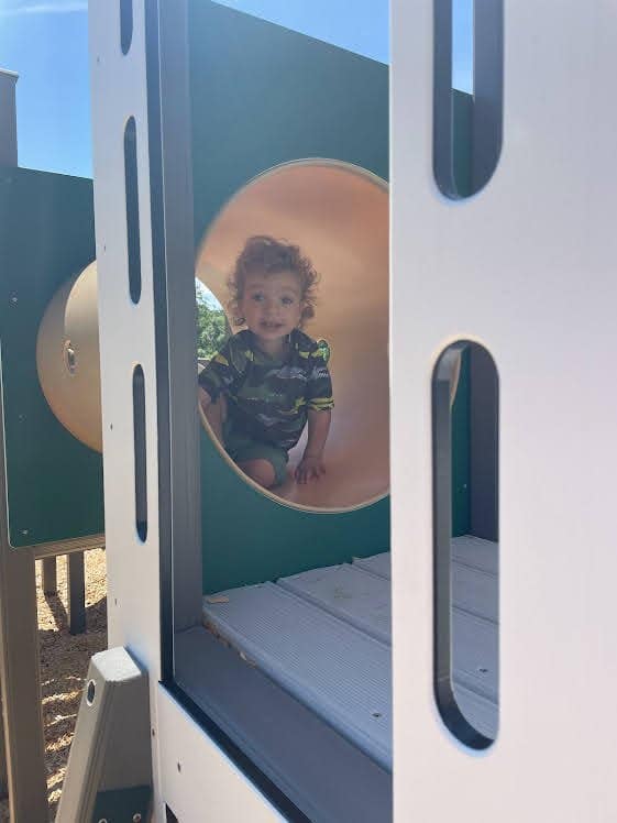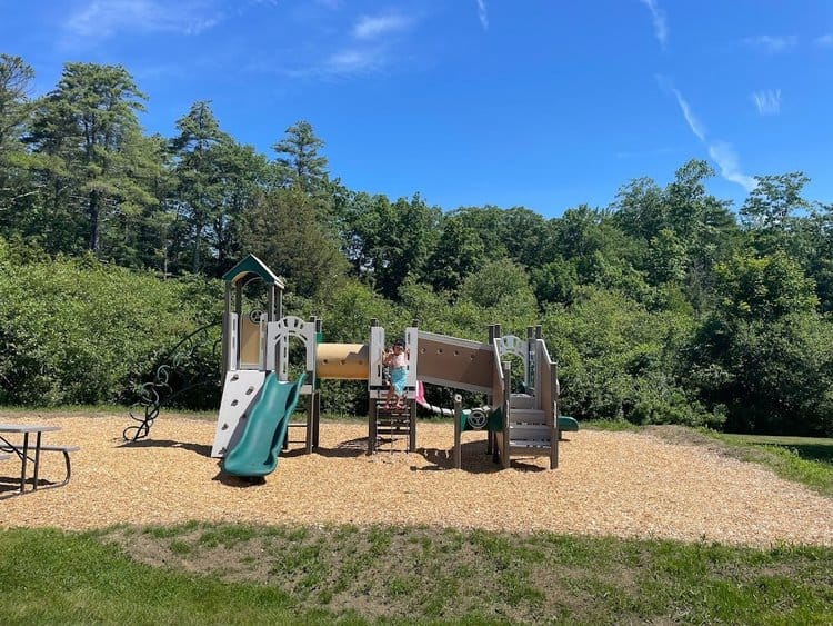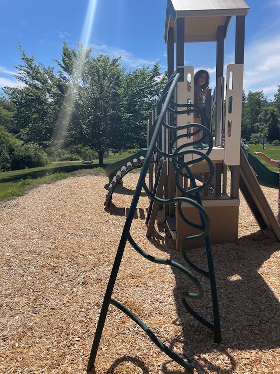 This Play structure titled “Rocky Racoon in Thyme” is from Playmart. It includes climbers from the rock climber to the arch climber to the vortex. There is also an Interactive Gear Panel and a unique Teleidoscope. A bay swing and zig- zag balance beam were also added to the new structure, capped off with a fresh wood fiber surface. The “a la carte” type accessibility of Premier Park and Play’s customers was executed perfectly by the Playground at Pinderosa!