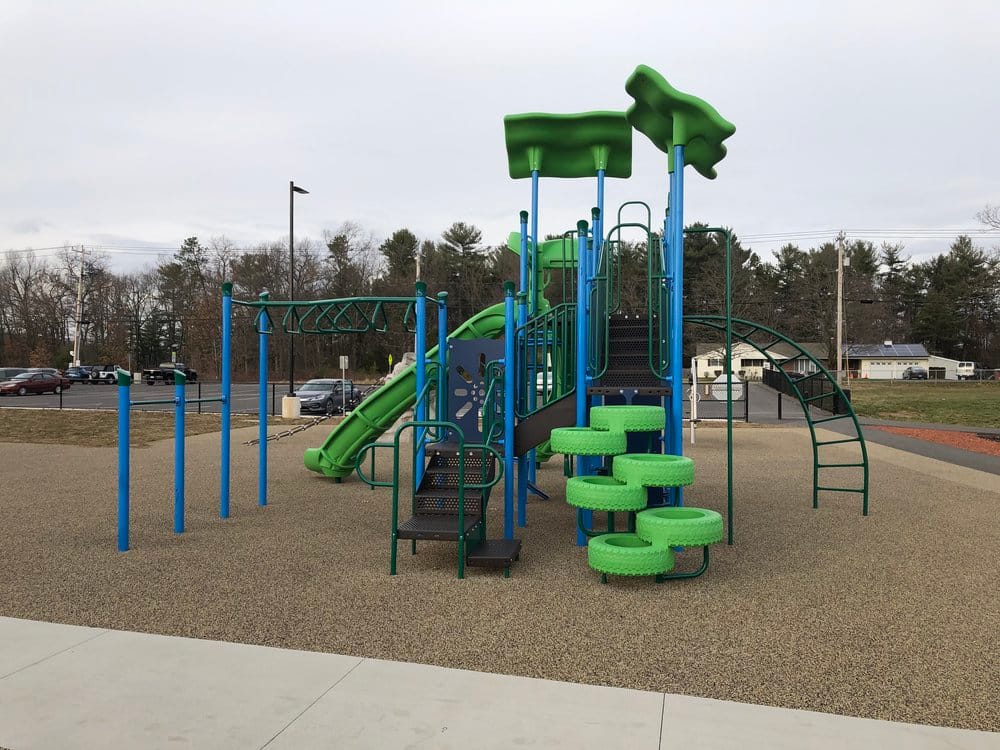 Provided by Superior Recreational Products, this new structure was installed by Premier Park and Play at Powder Mill School in Southwick, MA. Several climbers are included in this playground with a sleek – looking and safe rubber mulch surface
